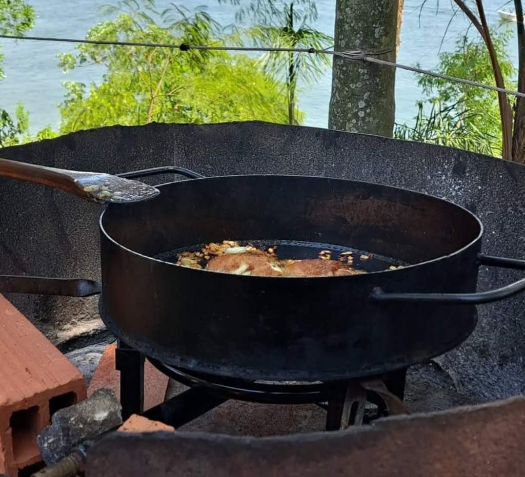 Transforme sua experiência gastronômica com nosso combo incrível! Este disco, com um diâmetro de aproximadamente 45 cm e borda de 9 cm, é feito com chapa original de disco de arado em aço carbono, garantindo durabilidade e resistência. Acompanha também uma tampa em chapa metálica, equipada com uma alça prática para facilitar o transporte.